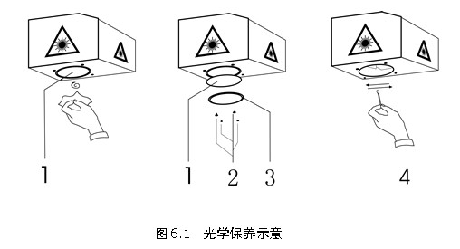 先用鏡頭紙沾酒精,把透鏡鏡1外表面清洗干凈,然后小心卸下透鏡2-3并清洗透鏡鏡內(nèi)表面。最后用棉簽沾酒精清洗X/Y反射鏡。
